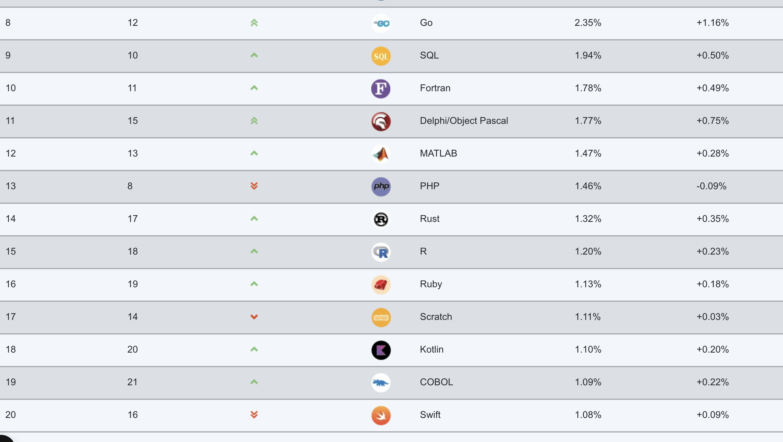 근데 tiobe 2024를 보면 php는 꽤 상위에 있다.
